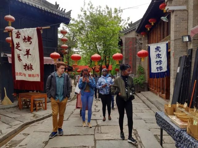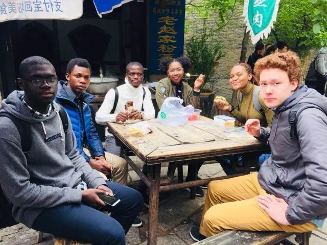 村子里充满了各种具有陕西色彩的叫卖声,留学生们在各式各样的摊位前买到了自己喜欢的美食,坐在一起分享。