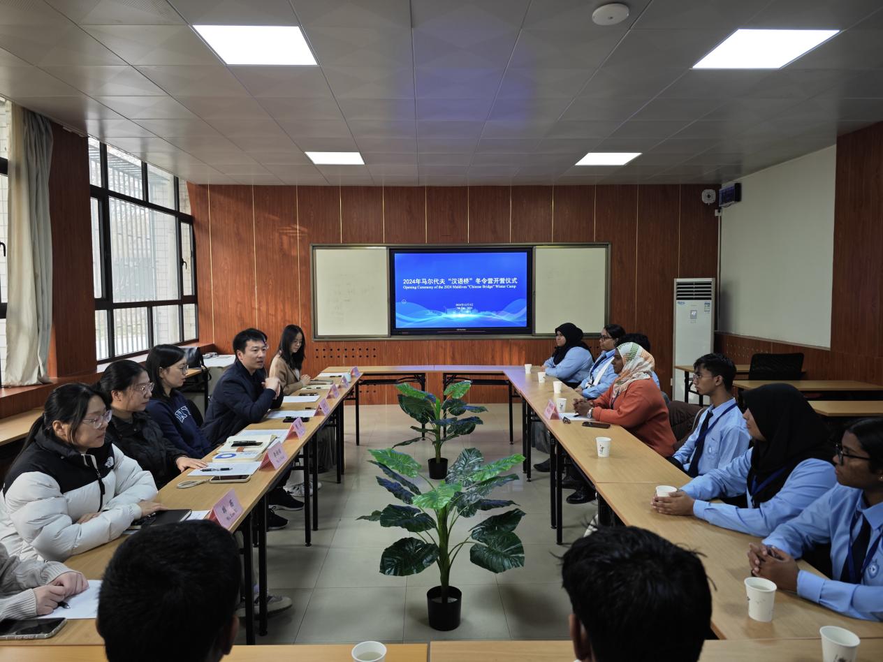 12月5日,由长安大学国际教育学院承办的“马尔代夫‘汉语桥’冬令营”开营仪式顺利举办。该项目主要面向马尔代夫中文及中国文化爱好者,旨在增进马尔代夫学生对中国语言与文化的了解,为两国友好关系发展搭建桥梁,此次冬令营学员均来自马尔代夫维拉国际高中。长安大学国际教育学院副院长吕卫东出席开营仪式并致辞。马尔代夫维拉国际高中教师代表AMINATH SHAFFA、长安大学国际教育学院教师代表及冬令营全体学员参加开营仪式。