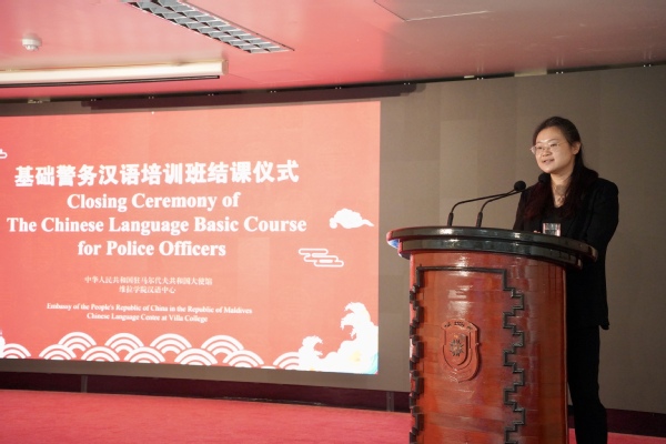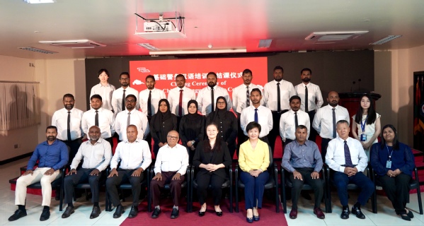 当地时间2月25日晚,马尔代夫警察局基础汉语培训班结课仪式在马尔代夫警察学院隆重举行。中国驻马尔代夫使馆临时代办何芬女士、马尔代夫警察学院负责人、维拉学院校长安瓦尔博士和汉语中心中方主任马越晗等出席。该课程历时三个月,23名来自马尔代夫各岛、服务于不同岗位的警员顺利结业,为当地警务工作中的汉语应用提供了新助力。