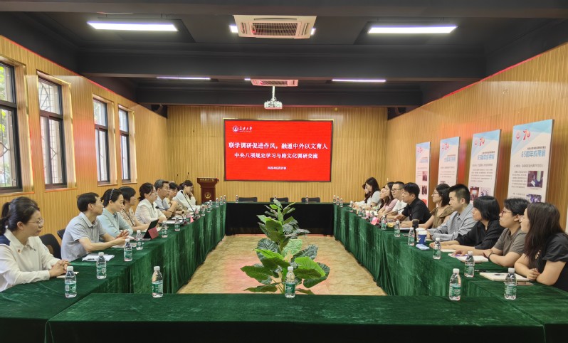 为推动深入贯彻中央八项规定精神学习教育走深走实、见行见效,加强党支部建设,以党建工作引领业务发展,2025年5月29日下午,国际教育学院、国际学生工作处党支部与人文学院机关党支部、中文党支部在国际教育学院多功能厅组织了“联学调研促进作风,融通中外以文育人”学习教育活动。本次活动聚焦党建引领与中央八项规定精神的深入贯彻,致力于促进双方在文化传承、国际交流、学术合作、人才培养等领域的深度融合。