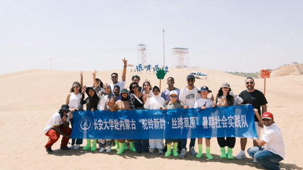7月下旬,长安大学国际教育学院组织来自10余个国家的20余名国际学生深入内蒙古自治区,开展“驼铃新韵·丝路草原”暑期社会实践。学生们在8天行程中横跨鄂尔多斯、呼和浩特、包头三市多地区,以生态治理、非遗传承、历史文脉为线索,全景式体验了草原文明与现代中国的交融发展。