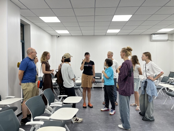 娜塔莉一行人来到小寨校区对外汉语培训中心参观交流,黄爱琴老师及汉语中心教师向其介绍了近年的汉语教学特色、课程设置、师资建设及国际学生培养成果,重点提及汉语进修生培养的特色举措。娜塔莉认真听取介绍并提问,不时与同行亲友分享自身当年在校学习的趣事,言语间满是对母校学习时光的怀念。她坦言,毕业回国后始终通过各类渠道关注母校动态,此次返校看到如今更加完善的设施与浓厚的学习氛围,仿佛回到当年求学时光,内心满是欣喜。