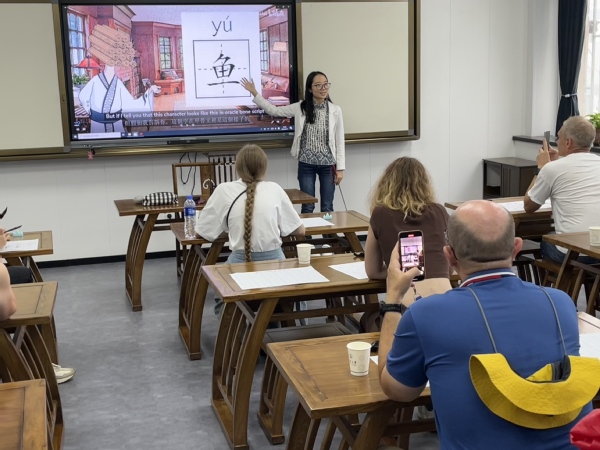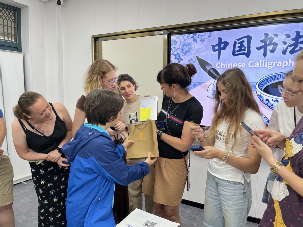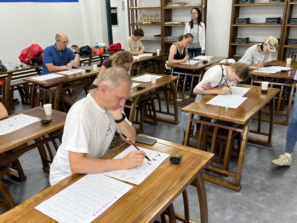 随后,娜塔莉一行在中华才艺教室体验书法课,在汉语老师的指导下学习书写汉字,感受中国传统文化,现场氛围融洽。