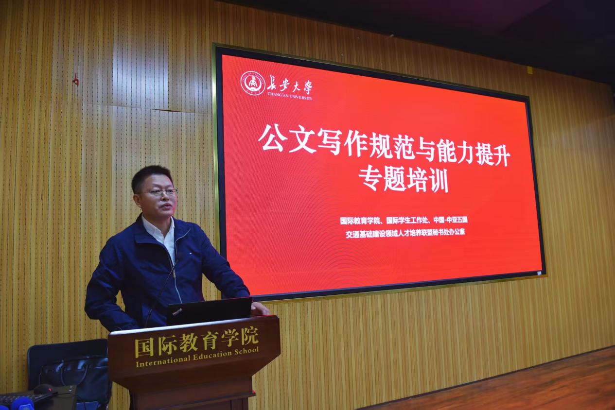 为进一步提升学院公文写作规范化、专业化水平,增强教职工公文写作能力,10月15日,国际教育学院在多功能厅举办公文写作规范与能力提升专题培训会。此次培训特邀校办副主任朱先前担任主讲嘉宾,各科室负责人及全体教职工参加培训。会议由国际教育学院院长张伟主持。