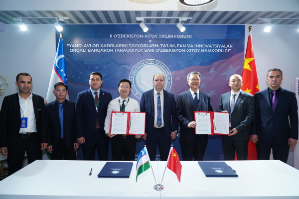 11月2日至3日,第二届中国—乌兹别克斯坦百校合作论坛在乌兹别克斯坦首都塔什干举行。中国教育部部长怀进鹏与乌兹别克斯坦共和国高等教育、科学和创新部部长孔格拉特拜·沙里波夫出席论坛并致辞。在怀进鹏部长与沙里波夫部长的共同见证下,我校党委书记陈志坚与中国地质大学(武汉)、中核地质勘查集团有限公司、中建国际乌兹别克斯坦有限公司、乌兹别克斯坦地质大学、塔什干国立交通大学、塔什干国立技术大学、乌兹别克斯坦科技金属集团、乌兹别克斯坦国家规划设计院等8所高校、企业及政府单位代表共同签署《中国—乌兹别克斯坦卓越工程师学院联合共建谅解备忘录》。中—乌交通学院作为中乌两国在教育与科技合作领域的重点项目,采用“四校+四企”协同模式,聚焦重大交通基础设施建设与智能电动汽车等领域,构建“校企协同、跨境共育”的国际化人才培养新范式, 旨在打造辐射中亚地区的高层次工程人才培养与科技创新核心平台。
