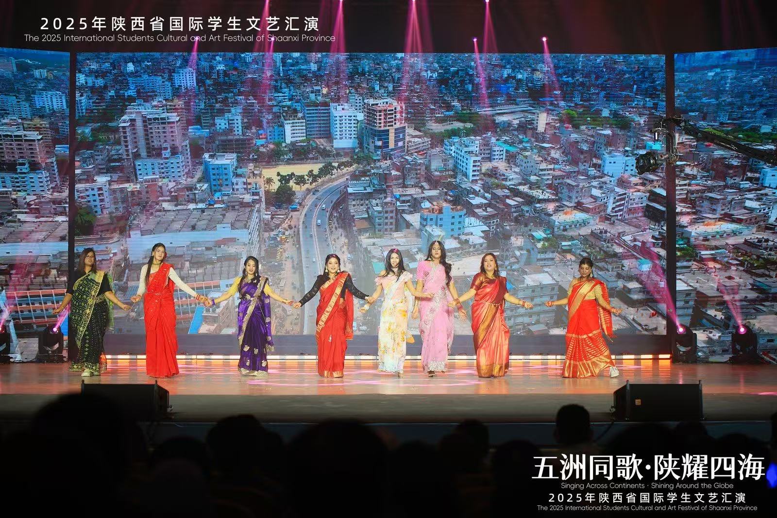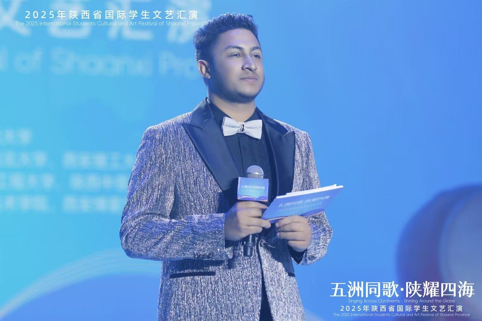 11月26日晚,2025年陕西省国际学生文艺汇演在西安电子科技大学北校区举办。我校来自哈萨克斯坦、泰国、摩洛哥、塔吉克斯坦、吉尔吉斯斯坦、津巴布韦、赞比亚、蒙古、孟加拉国等国的22名学生代表参加本次汇演。汇演以“五洲同歌、闪耀四海”为主题,分为上下两个篇章。