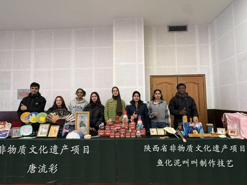 为传承中华优秀传统文化,促进文化交流、民心相通,12月16日晚,“非遗校园行”中华优秀传统文化体验活动在我校北校区长安文化艺术中心圆满举行,我院20名来自蒙古、巴基斯坦、摩洛哥、刚果(布)等国的留学生参加本次活动。本次活动特邀鱼化泥叫叫、唐流彩、烙画三项国家级及省级非物质文化遗产项目及其传承人走进校园,通过讲解、展示与体验相结合的形式,为师生带来一场沉浸式的文化盛宴。