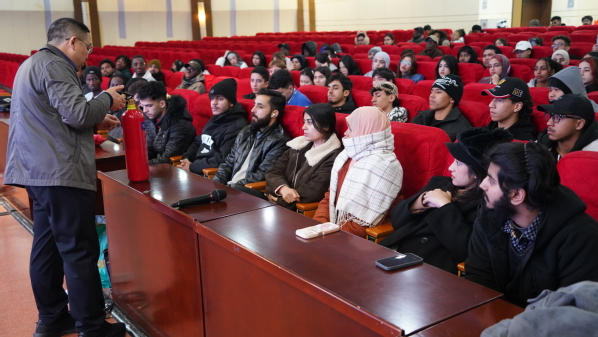 为强化国际学生消防安全意识,提升应急处置与自救逃生能力,12月16日下午,我院联合保卫处,在北校区会议中心报告厅成功举办国际学生消防安全知识讲座。保卫处消防科孙德斌老师担任主讲,二百余名国际学生代表参加了此次活动。