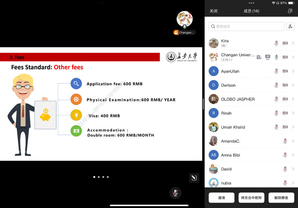 北校区专场于23日下午在鸿远楼WH1101教室率先举行,吸引了大量校内国际学生的关注。南校区专场于26日下午在国际教育学院多功能厅举办,并通过腾讯会议平台实时直播,确保了因地域限制无法亲临现场的海外学子也能同步参与、互动交流。