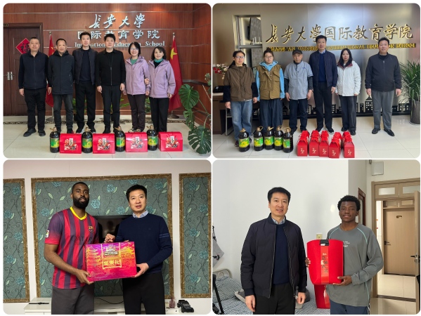 2月9日,北方小年来临之际,陕西省教育厅对外合作交流处处长文通莅临长安大学国际教育学院,检查寒假国际学生管理工作,并同国际教育学院院长张伟、副院长吕卫东一道,分赴南、北校区国际学生公寓及校外住宿点,慰问留校国际学生、物业值班人员,为他们送上节日问候与新春祝福。