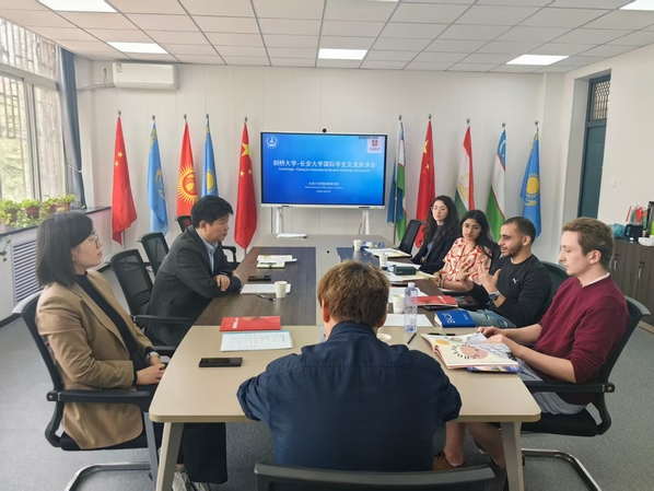 语言课后,学校召开剑桥大学-长安大学国际学生座谈交流会。国际教育学院院长张伟出席座谈,与学生代表深入交流。张伟对代表团一行的到访表示欢迎,简要介绍了学校国际教育特色与成果。他指出,学校长期致力开展高水平国际中文教育,注重语言教学与文化理解融合。希望剑桥大学优秀学子通过此次访问,提升中文应用能力,感受中国文化魅力。他期待以此次来访为契机,推动两校在中文课程共建、学生互访、学术交流等方面开展长期合作,推动校际合作走深走实。代表团对我校中文教学与文化实践课程设计表示高度认可,同时表达来校研修中文、开展科研交流的浓厚兴趣。