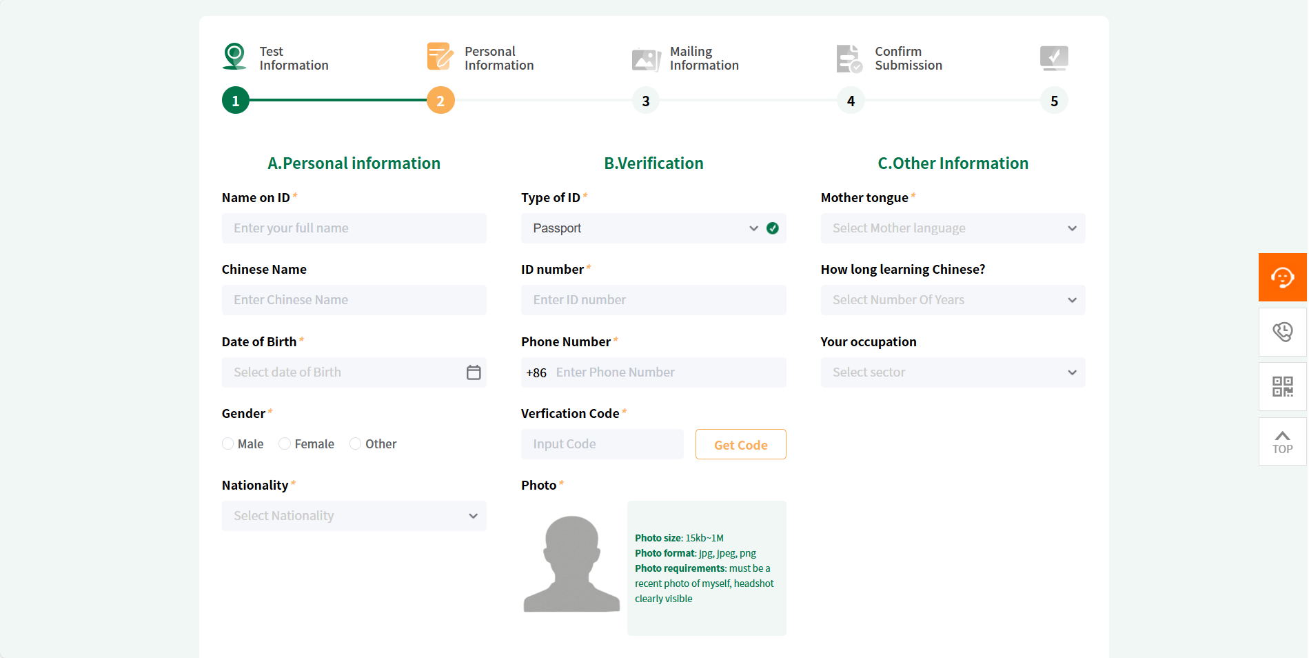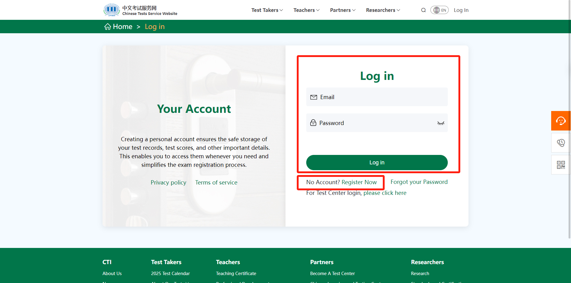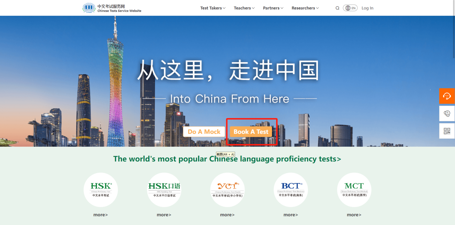 Access to the Chinese Examination Service website: https://www.chinesetest.cn